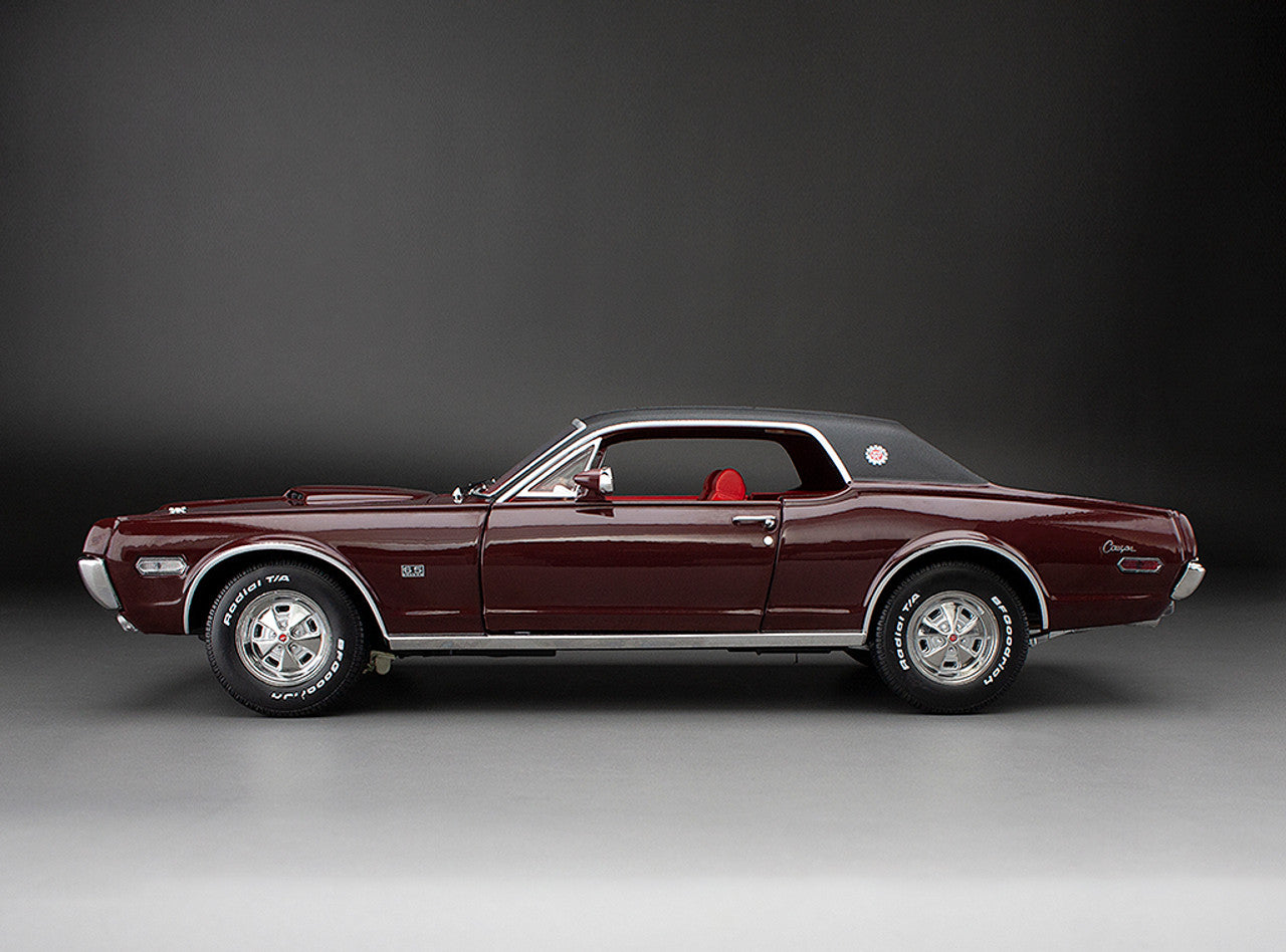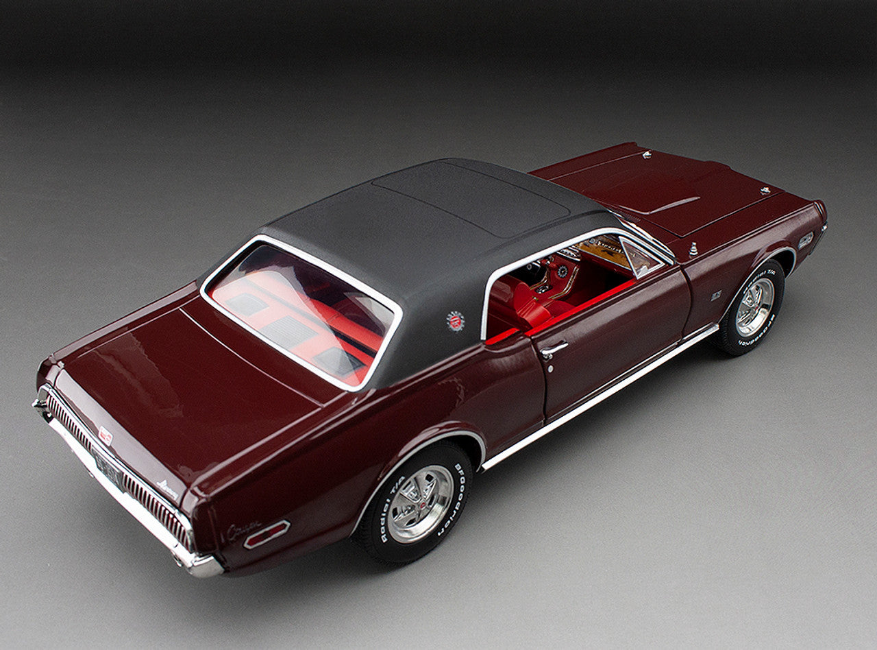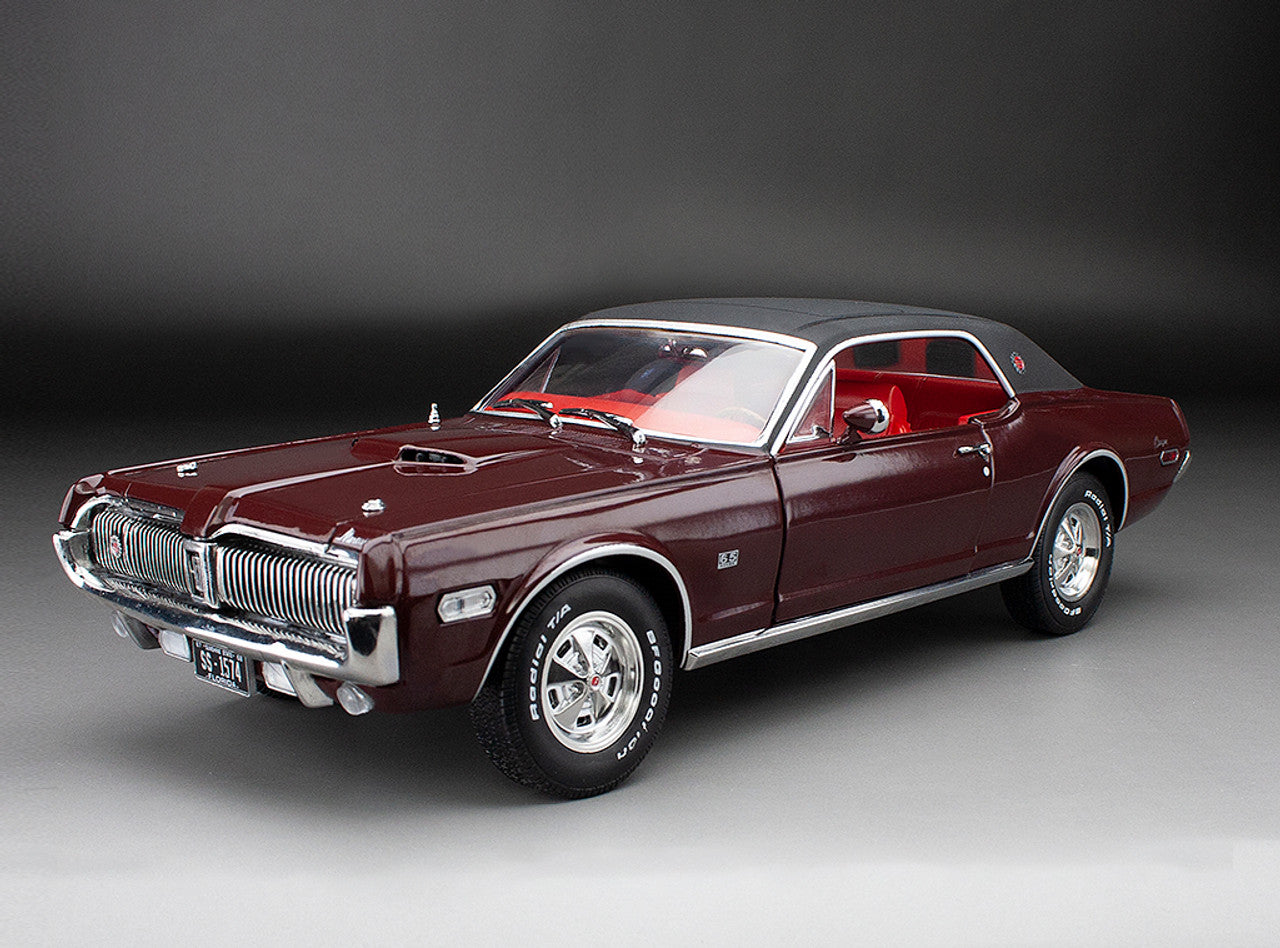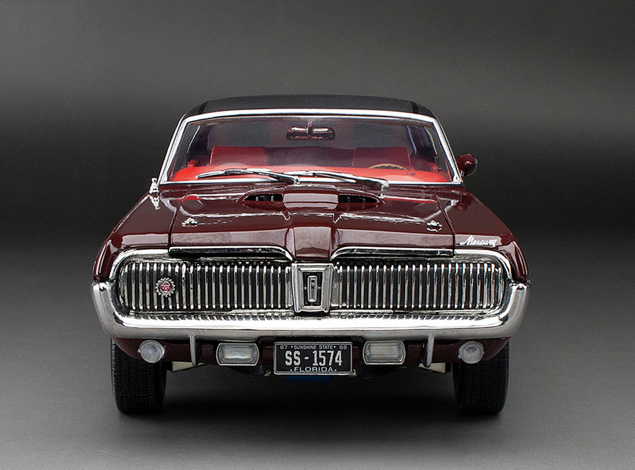 1968 Mercury Cougar XR7G 1:18 Scale Diecast in Black Cherry Red.