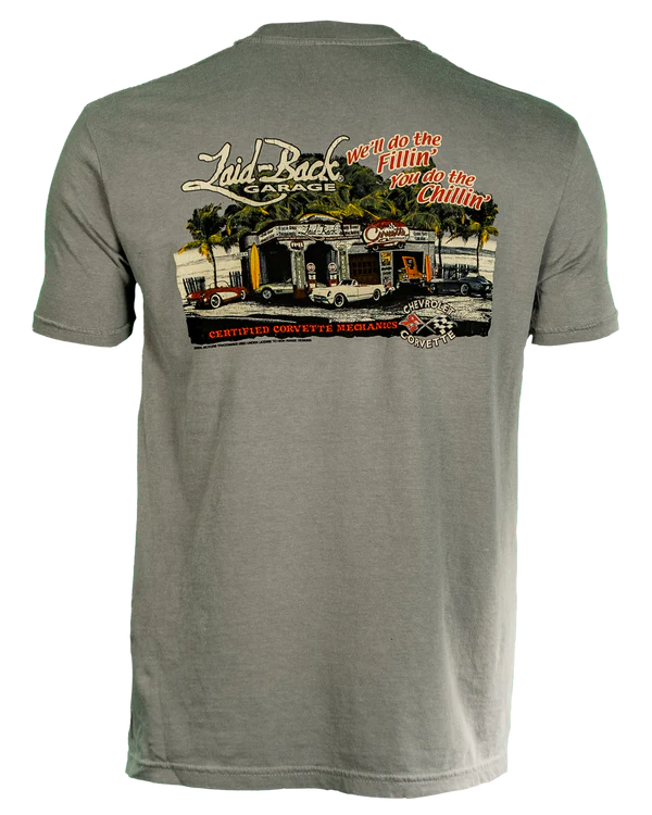 Step up your style game with the Dream Garage Corvette T-Shirt. Show off your passion for America's Sports Car, with coupes and roadsters beneath rustling palm trees and foamy surf by the sea. Set the example for your crew and wear the dream.