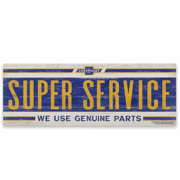 Pay tribute to an all-American automobile maker with this distressed, retro wall décor! In eye-catching blue, yellow, and white, it's as bold as it is nostalgic.