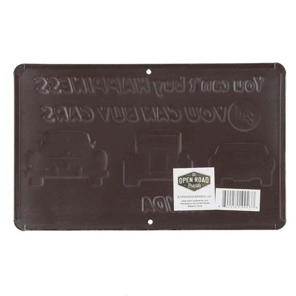 Liven up your auto decor with this fun you can't buy happiness, but you can buy cars tin sign.